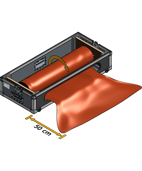 Operate the roller, rolling the Reveal Fabric into the Flightcase and stop when it is about 50 cm out of the FlightCase.