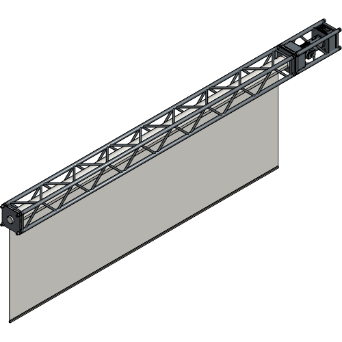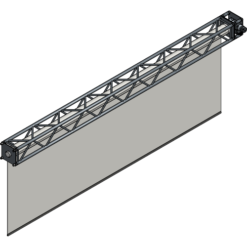With a sturdy 40/40 truss section of 6 m and a roller diameter of 20 cm, our standard 6 m Truss Roller is designed to handle screens and fabrics of maximum 5.85 m wide.