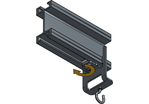 Loosen the channel nut of the hook clamps until they fit the track profile, and insert them into the track at the beginning, the middle and at the end of both curves.