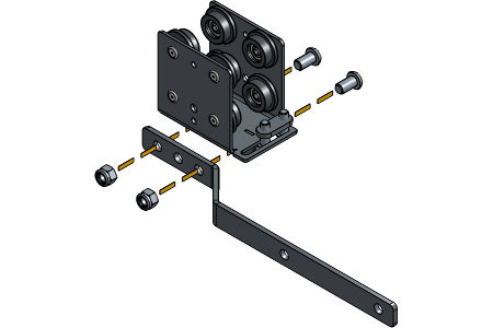 Insert the Return Pulley at the end of the track next to the End Stop. Rotate the channel nuts a quarter turn right and tighten the socket screws.